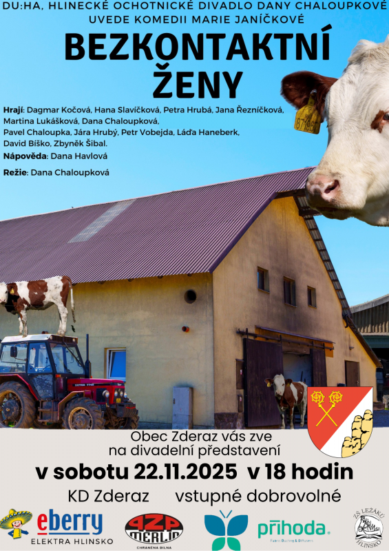 dne 22.11.2025 si vás dovolujeme pozvat do KD Zderaz na divadelní představení Bezkontaktní ženy v podání hlineckých ochotníků v seskupení DU:HA.