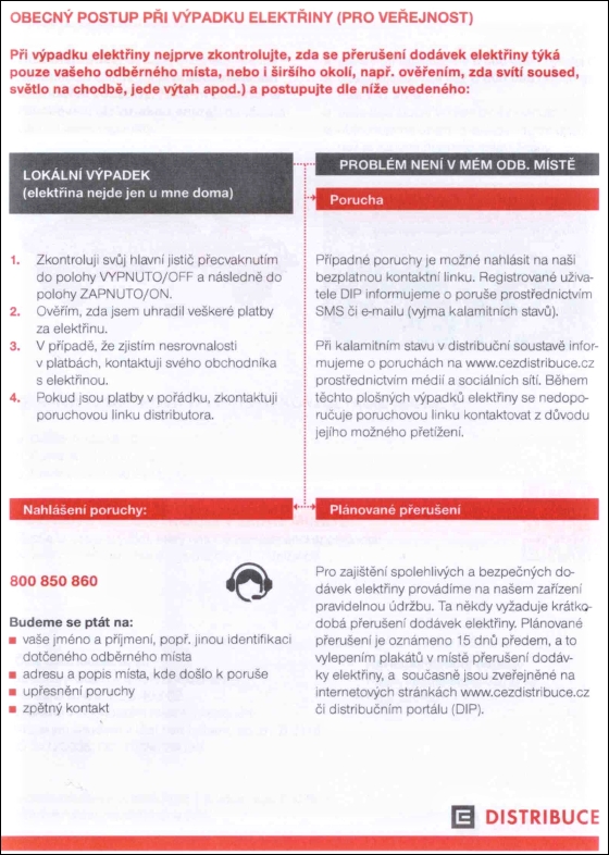 4. 6. 2018 - Obecný postup při výpadku elektřiny